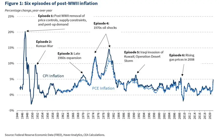 Note the post war peaks, the oil embargo peaks and the Covid peak.